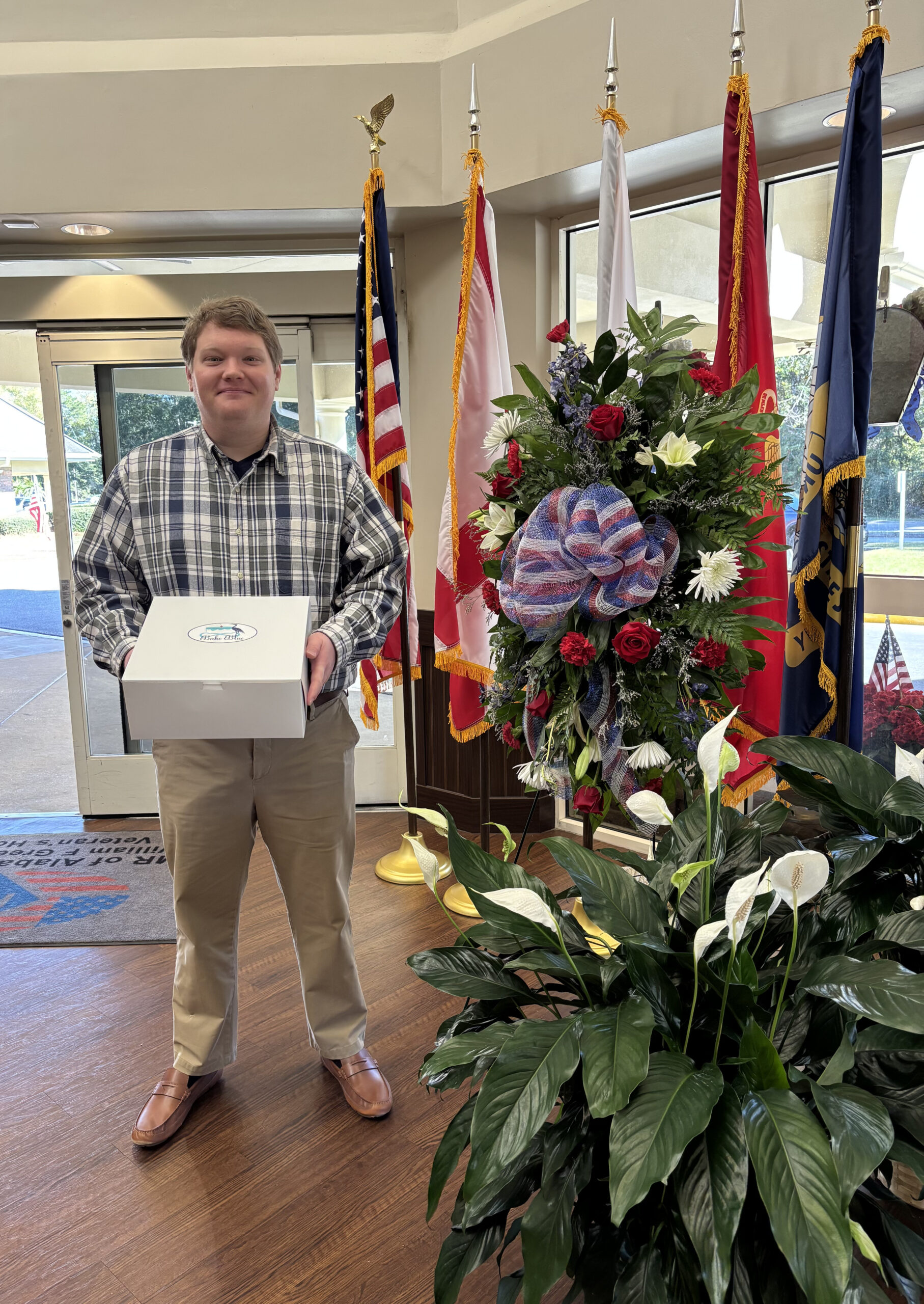 Bake Blue at the Child Advocacy Center in Mobile for the Serve it Up with Love Tournament meeting, pictured with Executive Director Andy Wynn